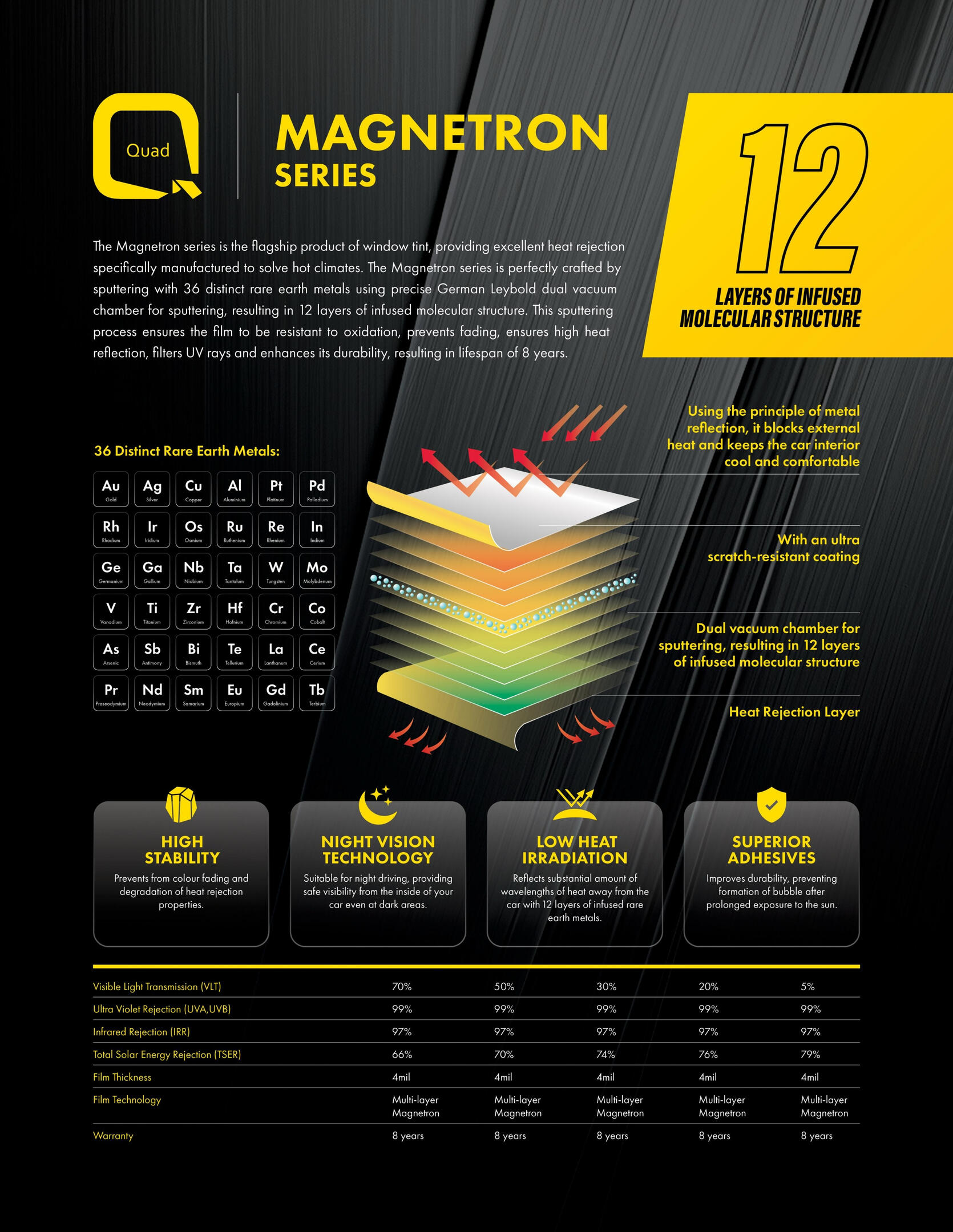 Maximum UV protection to protect skin and interior.Magnetron Series