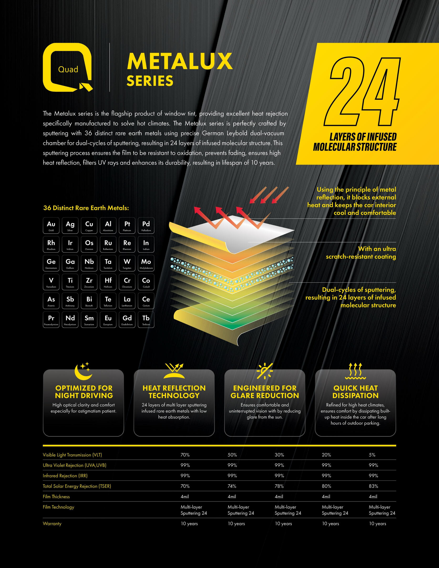 Enhanced heat reflection for vehicles exposed to long parking hours.Metalux Series